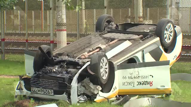 Автомобиль такси с пьяным водителем перевернулся в Москве