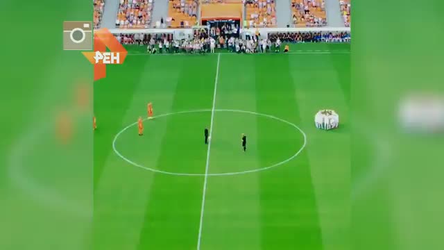 Пилот Airbus A321, совершившего посадку в поле возле аэропорта Жуковский, Дамир Юсупов нанес первый символический удар по мячу в матче шестого тура РПЛ между "Уралом" и "Крыльями Советов".