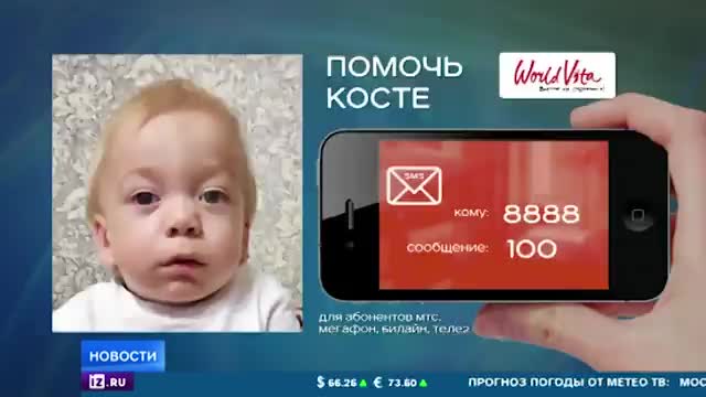 Чтобы помочь Косте, достаточно отправить СМС на короткий номер 8888, в тексте указать любую сумму. Можно также воспользоваться кредитной картой, электронным кошельком или совершить банковский перевод. Все инструкции, реквизиты и детальный отчет о потраченных средствах можно найти на сайте worldvita.ren.tv. Большое Вам спасибо!