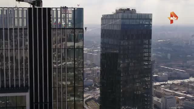 В Москве состоялось установление рекорда по хождению по канату, натянутому между зданиями - хайлайну. Канат был натянут между небоскребами в "Москва-сити" "Око" и Neva Towers.