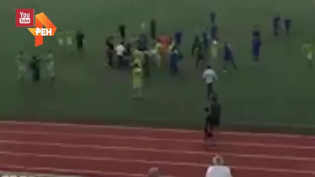 Видео: футболисты устроили массовую драку на поле в Махачкале