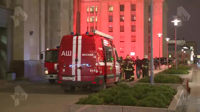 Появилось видео с камер наблюдения у здания МИД на Смоленской площади, в котором произошло задымление.