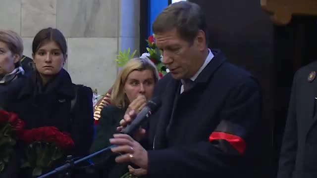 Заместитель руководителя администрации президента РФ Сергей Кириенко на церемонии прощания с вице-спикером Совета Федерации Евгением Бушминым зачитал письмо с соболезнованиями от президента России Владимира Путина.