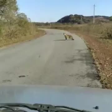 Житель Приморья остановился на дороге, увидев неподалеку леопарда. Мужчина успел снять на телефон самку, которая пересекала путь.