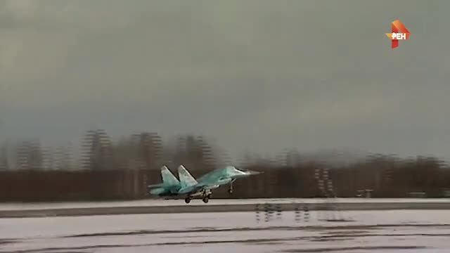 Появилось видео вылетов бомбардировщиков Су-34 на борьбу с глыбами льда
