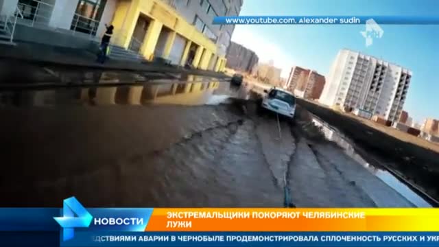 Экстремалы из Челябинска занимаются серфингом на грязных лужах