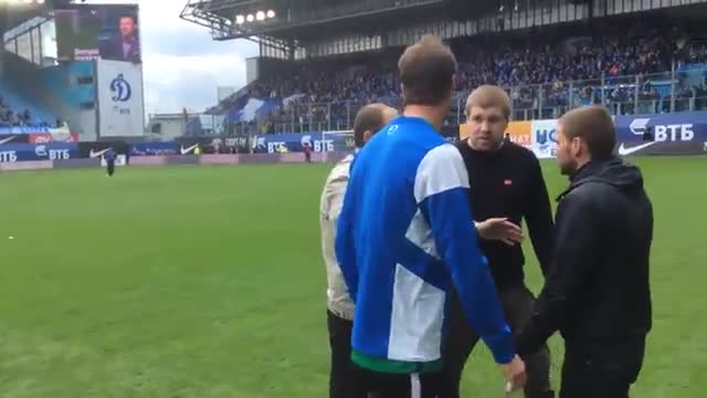 Накануне московское "Динамо" проиграло петербургскому Зениту". Команда впервые в истории вылетела из элитного дивизиона. Сразу же после игры около 10 болельщиков команды выбежали на газон, чтобы лично высказать свои претензии к футболистам.