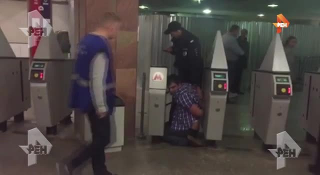 В Московском метрополитене на станции "Дмитровская" произошел серьезный скандал. По информации очевидцев, безбилетник попытался проскочить через турникет.