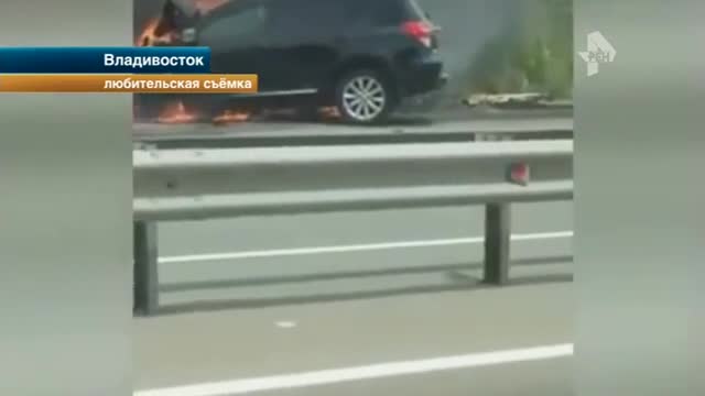 Три машины попали в огненную ловушку после ДТП на трассе в Приморье