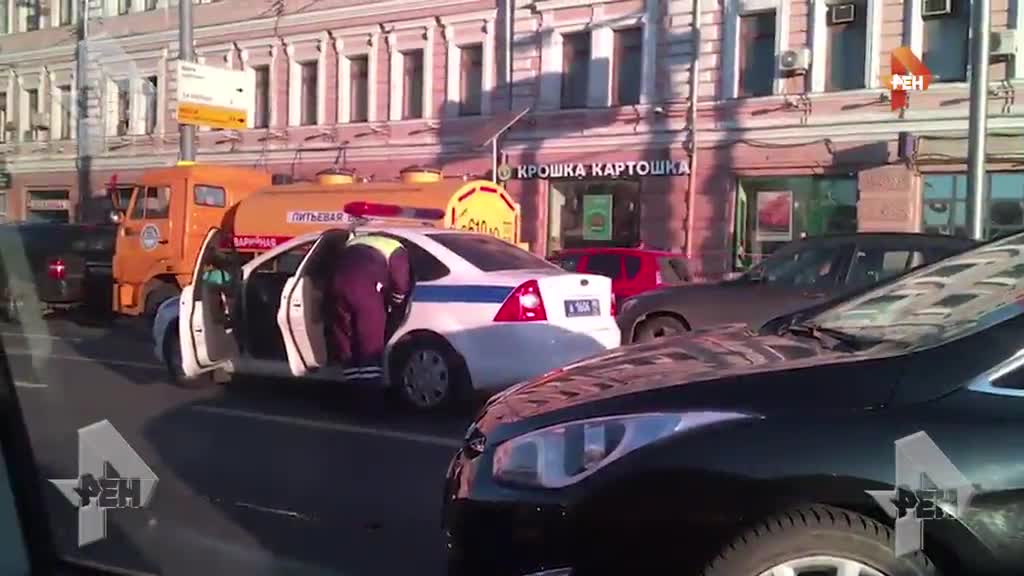 В распоряжении РЕН ТВ появилось видео ДТП, случившегося утром в понедельник, 24 октября, в центре столицы на Большой Сухаревской площади. Ранее источник сообщил РЕН ТВ, что в результате столкновения автобуса и такси есть пострадавшие.