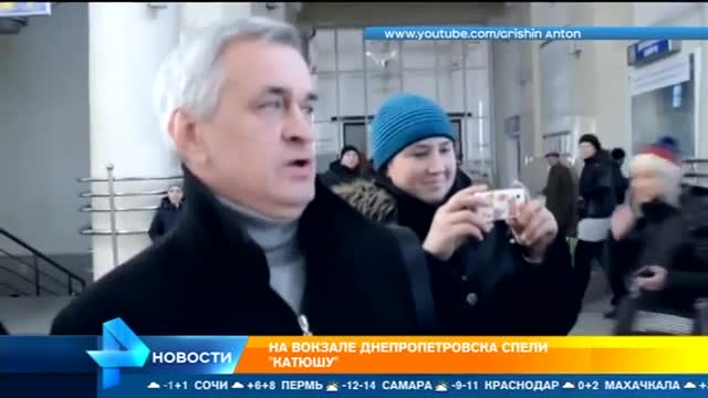На железнодорожном вокзале Днепропетровска накануне, впервые за долгие годы звучала легендарная "Катюша". Таким образом сотни жителей города поддержали флешмоб, который сейчас волной проходит по всей стране.